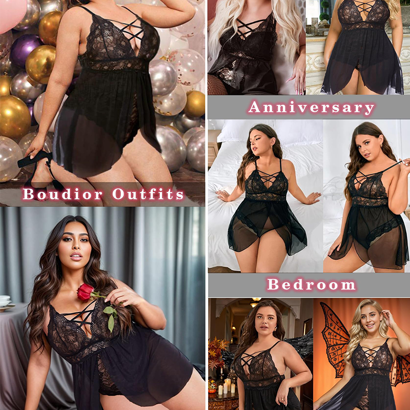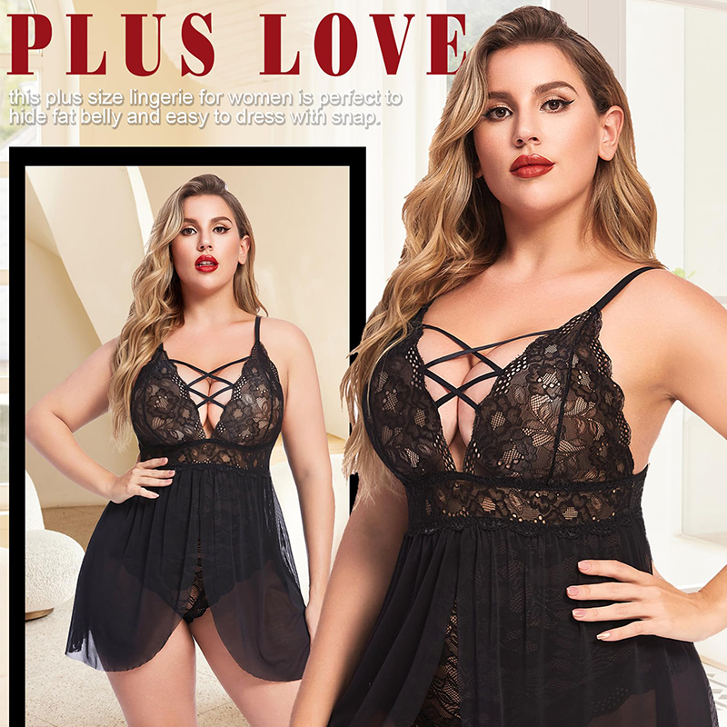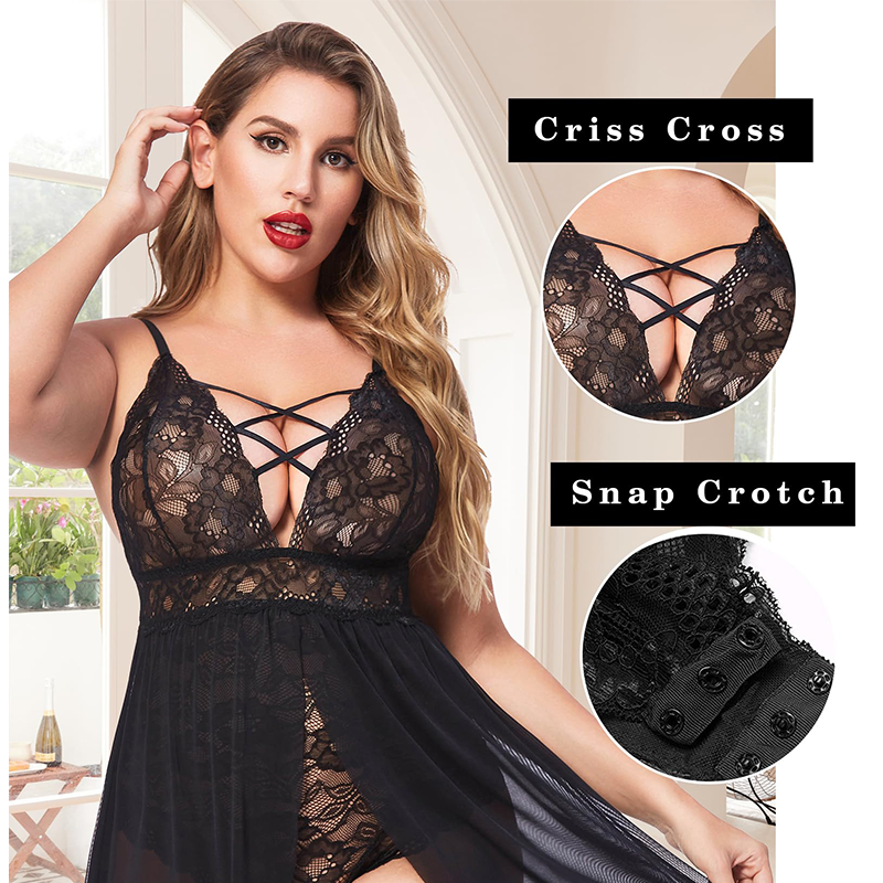 Avidlove Plus Size Babydoll Womens Snap Crotch Lingerie V Neck Lace Nighty Sleepwear L-5XL